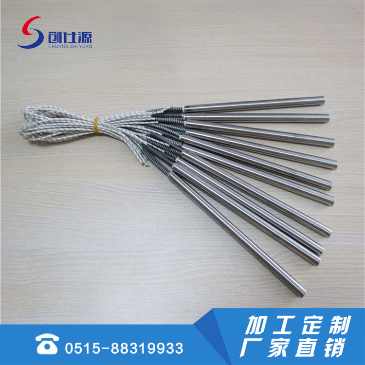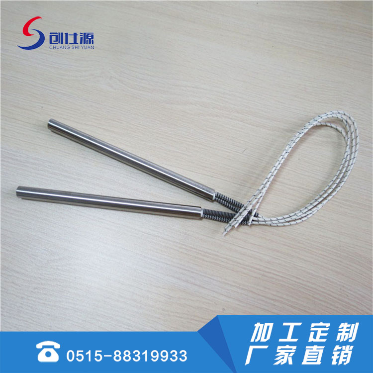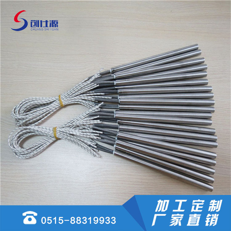 加热管(加热棒)是由金属管、螺旋状电阻丝以及导热性好、绝缘性好的结晶氧化镁粉等组合而成的。电加热管选用厚壁无缝不锈钢管、高温氧化镁粉以及封口材料,使电加热管耐温最高可达900℃,提高了电热管的耐高温和耐腐性,确保了电加热管的使用寿命 。电加热管是在无缝金属管内(碳钢管、钛管、不锈钢管、铜管)装入电热丝,空隙部分填满有良好导热性和绝缘性的氧化镁粉后缩管而治制成的,再将做好的加热管加工成用户所需要的各种形状。