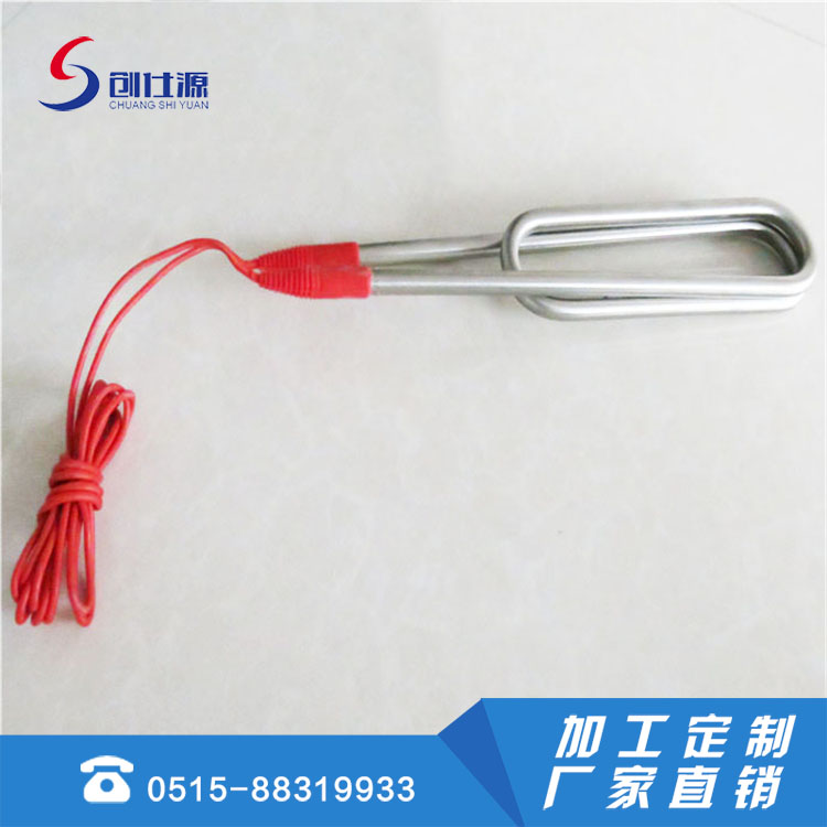 不锈钢双头电热管是以金属管为外壳,沿管内中心轴向均布螺旋电热合金丝(镍铬、铁铬合金)其空隙填充压实具有良好绝缘导热性能的氧化镁砂,管口两端用硅胶或陶瓷密封,这种金属铠装电热元件可以加热空气,金属模具和各种液体。主要形状有:U型、W型、直线型、L型、回字型、圆型,螺旋型、蚊香型等。