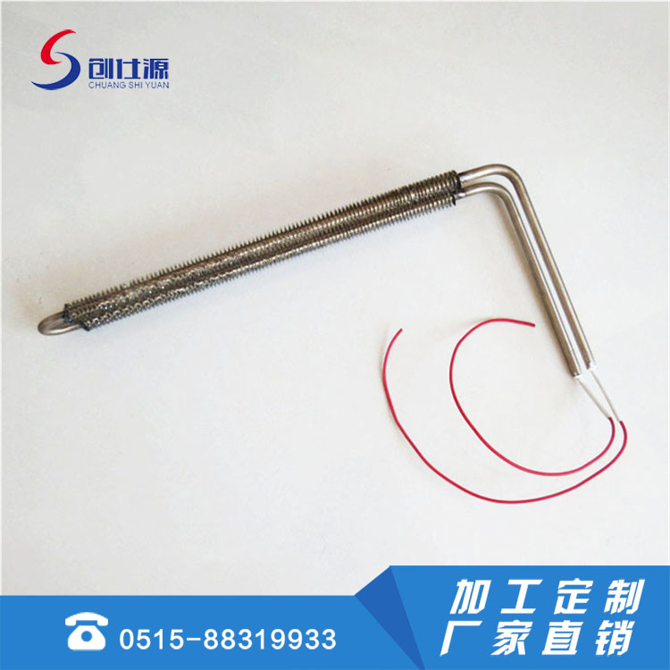 翅片加热管采用优质不锈钢、改性氧化镁粉、高电阻电热合金丝、不锈钢散热片等材料,在金属管中放入电热元件,并在空隙部分紧密填充有良好耐热性、导热性和绝缘性的结晶氧化镁/粉,通过先进的生产设备和工艺制作而成。翅片电加热管可以安装在吹风管道中或其它静止、流动空气的加热场合。 是在普通元件表面缠绕金属散热片,与普通元件相比散热面积扩大了2~3倍,即翅片元件所允许的表面功率负荷是普通元件的3~4倍。由于元件的长度缩短,使得本身的热损失减小,在相同的功率条件下具有结构简单,机械强度高、升温快、发热均匀、散热性能好、热效率高、使用寿命长、加热装置体积小,成本低,安装简便等优点。