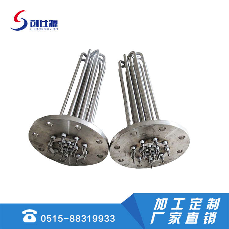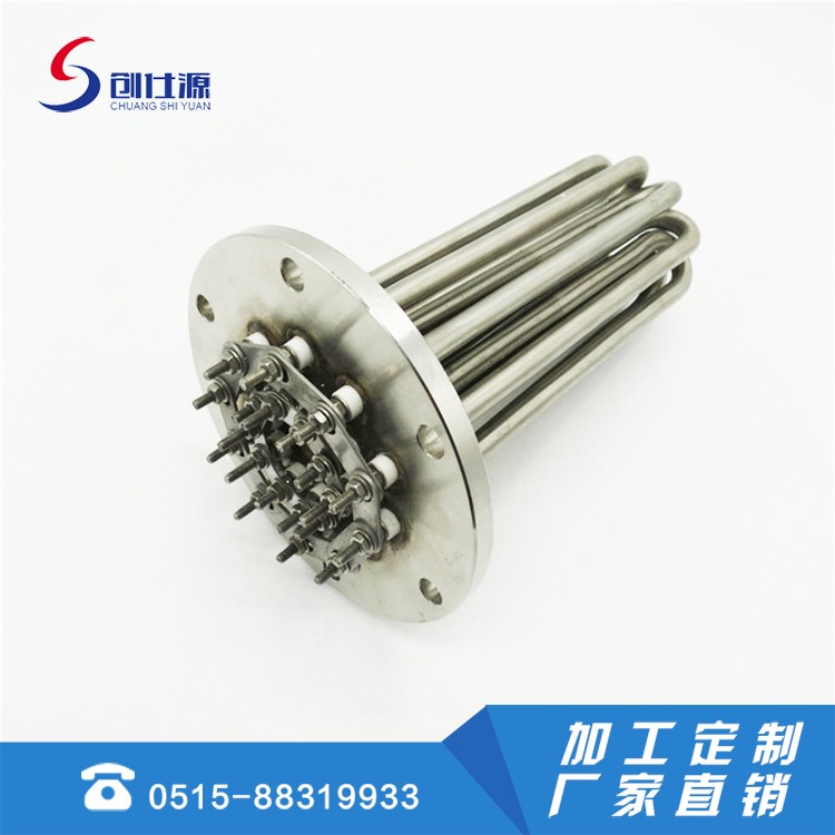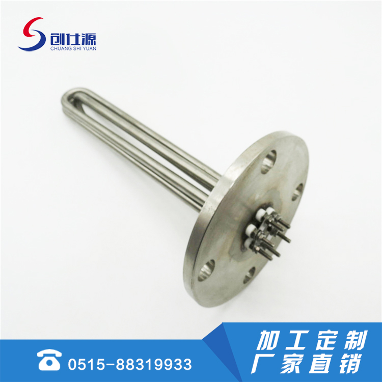 2、法兰加热器的发热区须全部浸入液体或金属固体内,严禁空烧。发现管体表面有水垢或结碳时,应及时清理干净再用,以免影晌散热而缩短使用寿命。