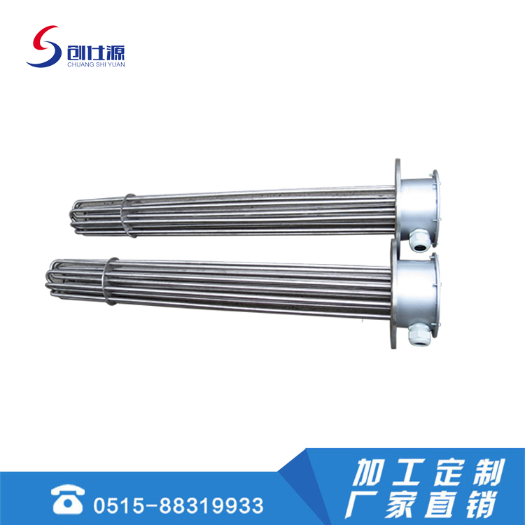 2、法兰加热器的发热区须全部浸入液体或金属固体内,严禁空烧。发现管体表面有水垢或结碳时,应及时清理干净再用,以免影晌散热而缩短使用寿命。