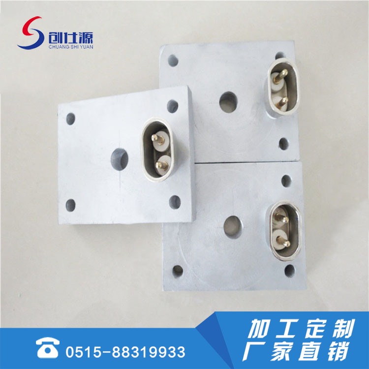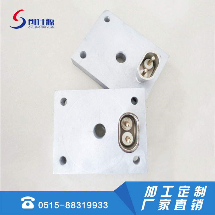 铸铝电加热器是金属铸造加热器是以管状电热元件为发热体,并弯曲成型,进入模具用金属合金材料为外壳以离心式浇铸成各种形状,有圆型、平板、直角型、风冷、水冷及其它异型等形状。