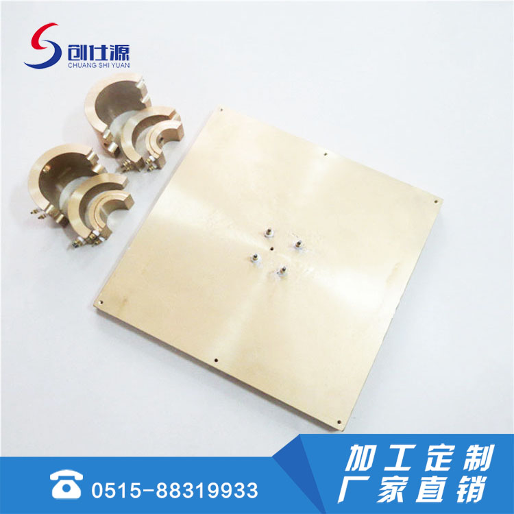 铸铜电加热器是金属铸造加热器是以管状电热元件为发热体,并弯曲成型,进入模具用金属合金材料为外壳以离心式浇铸成各种形状,有圆型、平板、直角型、风冷、水冷及其它异型等形状。