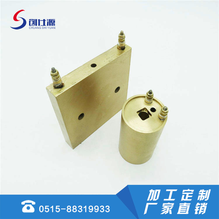 铸铜电加热器是金属铸造加热器是以管状电热元件为发热体,并弯曲成型,进入模具用金属合金材料为外壳以离心式浇铸成各种形状,有圆型、平板、直角型、风冷、水冷及其它异型等形状。