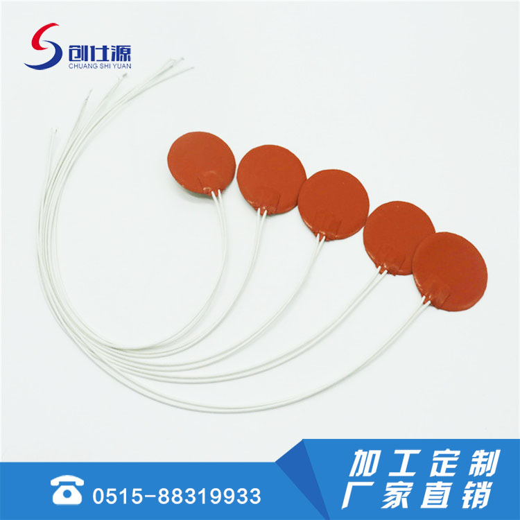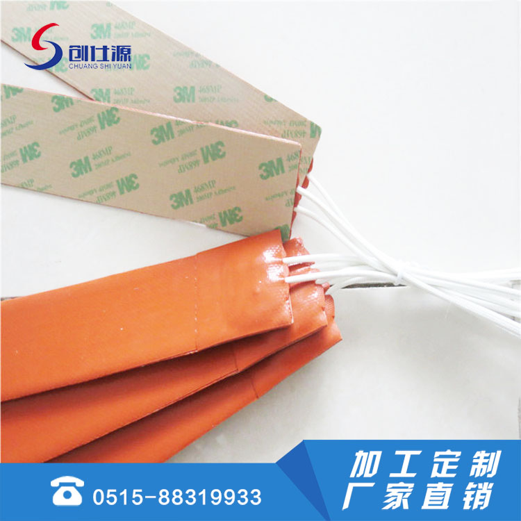 硅橡胶加热器(硅橡胶加热片)是一种通电即发热的薄片,标准厚度为1.8mm。加热元件采用镍铬丝或用厚度0.05 mm~0.10mm的镍铬箔蚀刻成一定的形状,两面以导热绝缘材料,经高温模压成形及老化热处理而成,因此具有很高的可靠性。可制作各种形状,固定方式常见的有3M胶、固定孔、弹簧扣、扎带、魔术贴等,常见的温控有旋钮温控(0-150℃),内置恒温器(根据需求来)、数显温控(0-200℃)。