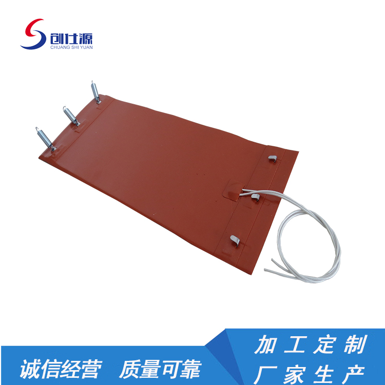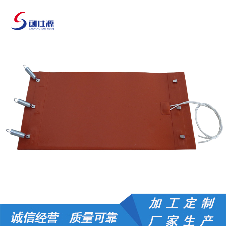 硅橡胶加热器(硅橡胶加热片)是一种通电即发热的薄片,标准厚度为1.8mm。加热元件采用镍铬丝或用厚度0.05 mm~0.10mm的镍铬箔蚀刻成一定的形状,两面以导热绝缘材料,经高温模压成形及老化热处理而成,因此具有很高的可靠性。可制作各种形状,固定方式常见的有3M胶、固定孔、弹簧扣、扎带、魔术贴等,常见的温控有旋钮温控(0-150℃),内置恒温器(根据需求来)、数显温控(0-200℃)。