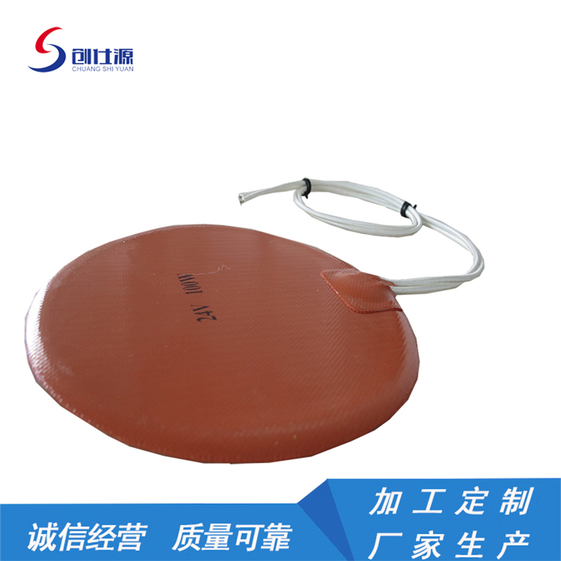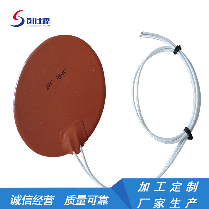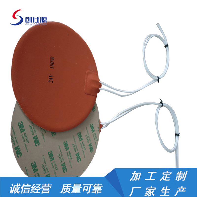 硅橡胶加热器(硅橡胶加热片)是一种通电即发热的薄片,标准厚度为1.8mm。加热元件采用镍铬丝或用厚度0.05 mm~0.10mm的镍铬箔蚀刻成一定的形状,两面以导热绝缘材料,经高温模压成形及老化热处理而成,因此具有很高的可靠性。可制作各种形状,固定方式常见的有3M胶、固定孔、弹簧扣、扎带、魔术贴等,常见的温控有旋钮温控(0-150℃),内置恒温器(根据需求来)、数显温控(0-200℃)。
