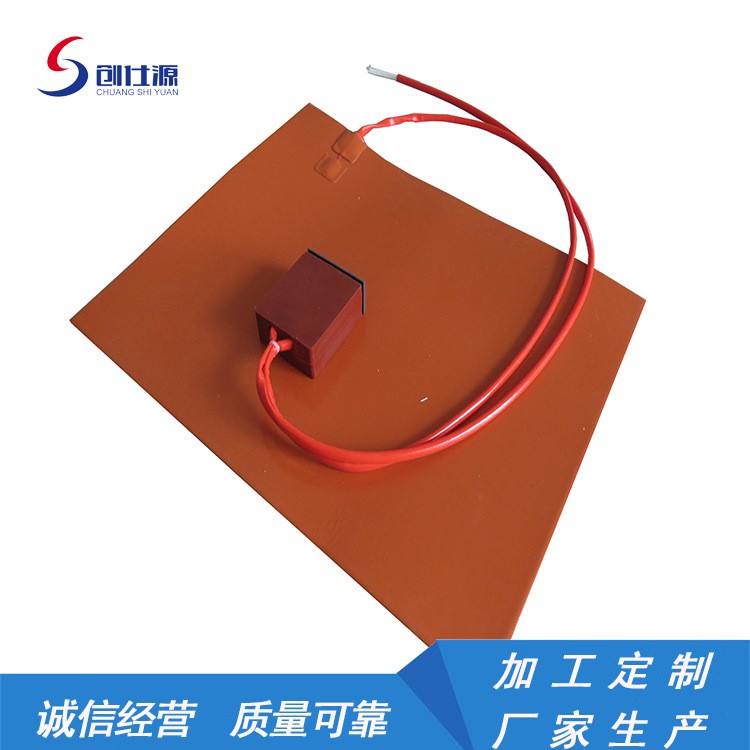硅橡胶加热器(硅橡胶加热片)是一种通电即发热的薄片,标准厚度为1.8mm。加热元件采用镍铬丝或用厚度0.05 mm~0.10mm的镍铬箔蚀刻成一定的形状,两面以导热绝缘材料,经高温模压成形及老化热处理而成,因此具有很高的可靠性。可制作各种形状,固定方式常见的有3M胶、固定孔、弹簧扣、扎带、魔术贴等,常见的温控有旋钮温控(0-150℃),内置恒温器(根据需求来)、数显温控(0-200℃)。