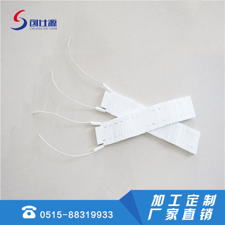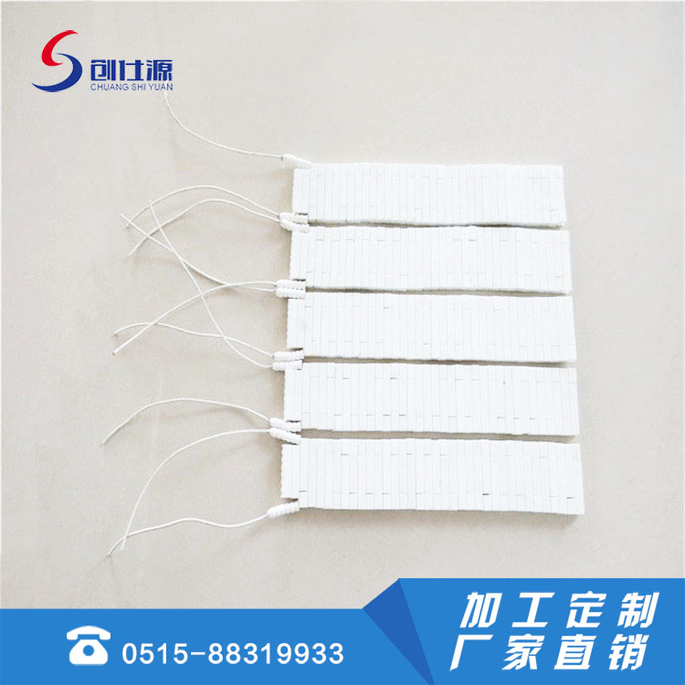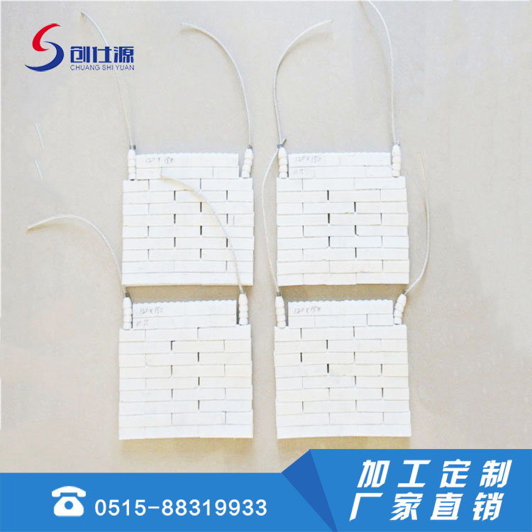 可根据用户需求的接线方式,电压从36V、110V、180V、220V、380V等 ,最高功率负载每平方厘米4-5W ,与传统电热器相比较能量消耗可降低30%。白色陶瓷耐温400-500℃。红色陶瓷耐温500-600℃。