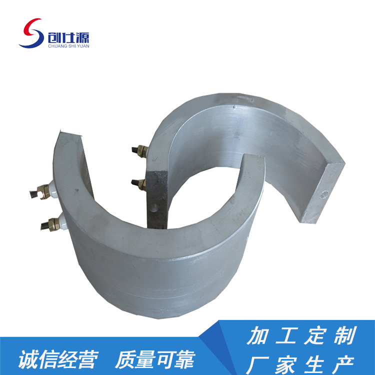 铸铝电加热器是金属铸造加热器是以管状电热元件为发热体,并弯曲成型,进入模具用金属合金材料为外壳以离心式浇铸成各种形状,有圆型、平板、直角型、风冷、水冷及其它异型等形状。