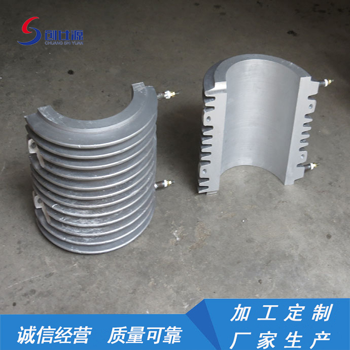 铸铝电加热器是金属铸造加热器是以管状电热元件为发热体,并弯曲成型,进入模具用金属合金材料为外壳以离心式浇铸成各种形状,有圆型、平板、直角型、风冷、水冷及其它异型等形状。