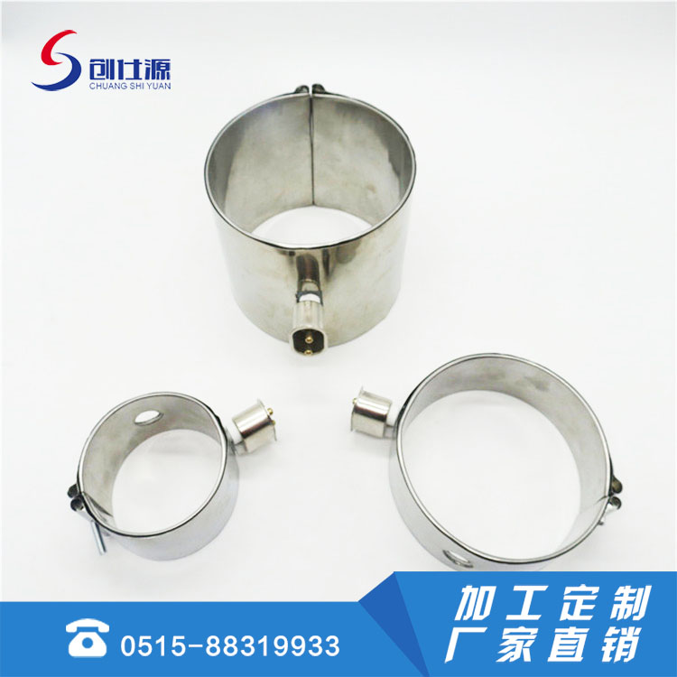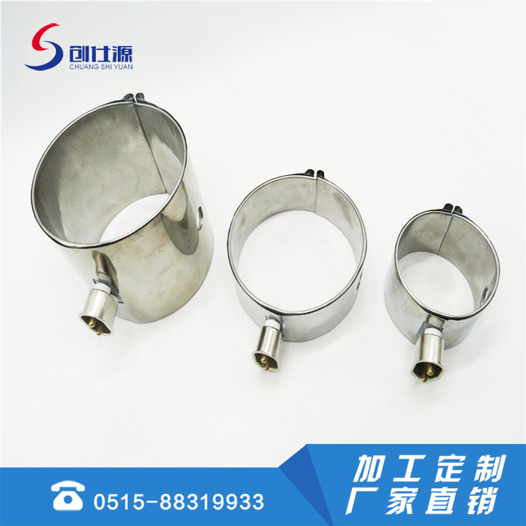 不锈钢云母加热器有圈型和板状等规格,具有加工简单,工作可靠,使用方便,升温迅速,热效率高,耗电量小,使用寿命长、制作不受型号和规格大小的限制等优点。广泛应用于塑料机械、包装印刷、石油化工、电子设备等行业。